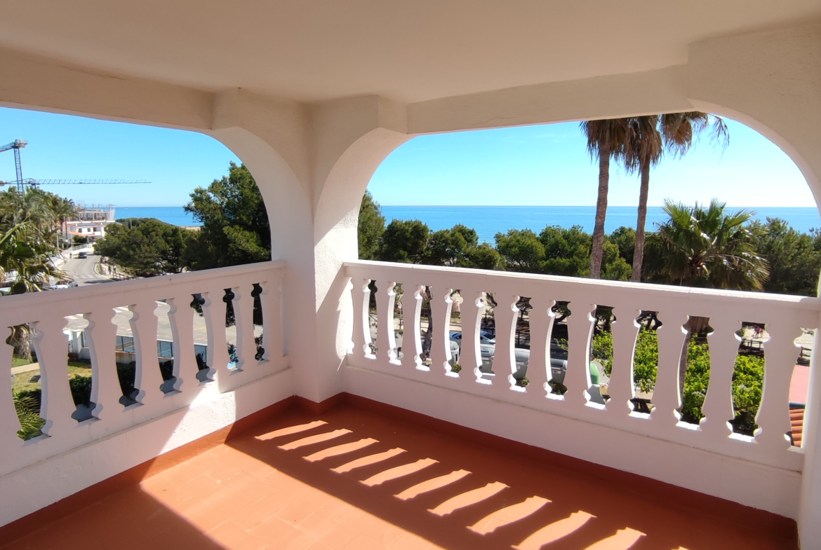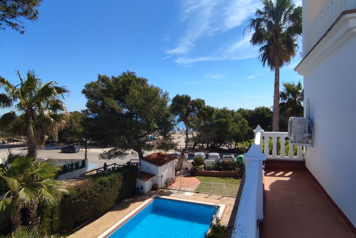 Se alquila espectacular casa en primera línea de la Playa Romana, una de las zonas más exclusivas y tranquilas de Alcossebre, con impresionantes vistas al mar desde prácticamente todas sus estancias.